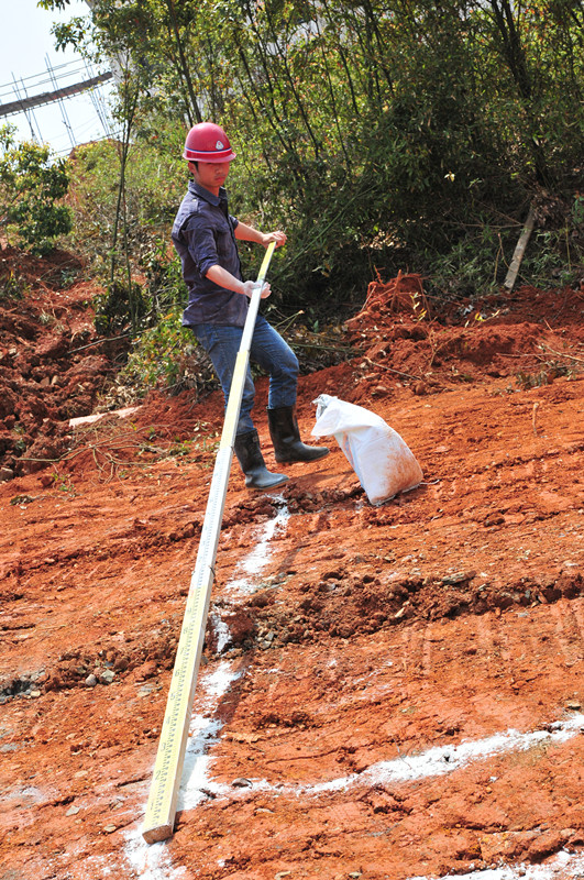 胡明同志在共青項目主動學(xué)習(xí)測量放線業(yè)務(wù)知識